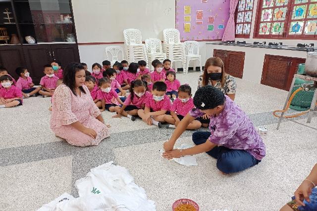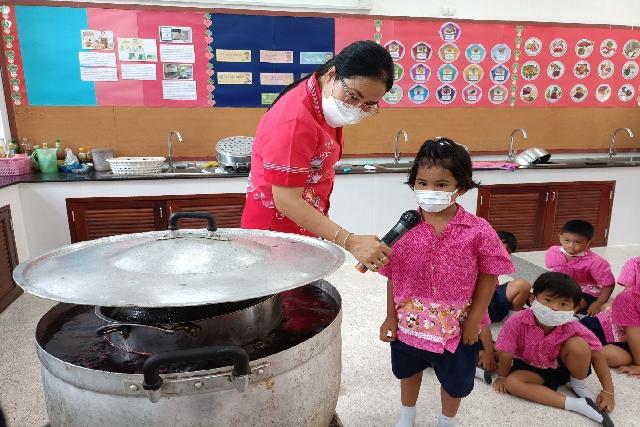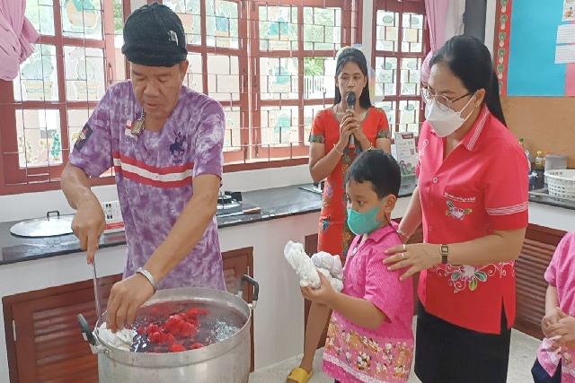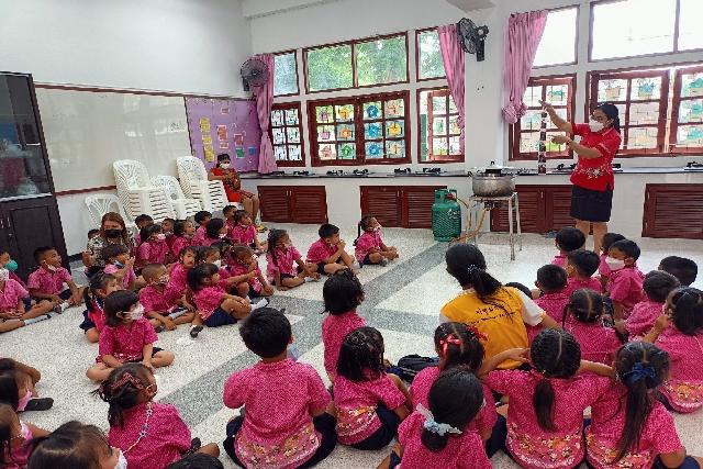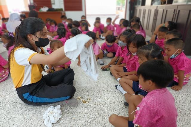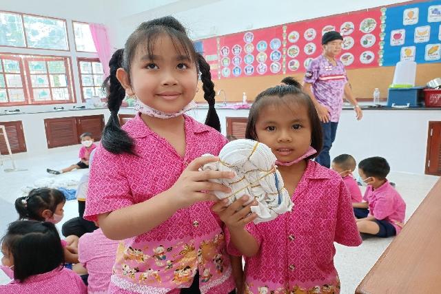 คณะครูชั้นอนุบาล วิทยากร ได้จัดกิจกรรมหนึ่งอนุบาล หนึ่งผลิตภัณฑ์ (ผ้ามัดย้อม) มีวัตถุประสงค์ เพื่อให้นักเรียนได้ฝึกความคิดสร้างสรรค์ มีความรับผิดชอบในสิ่งที่ได้รับมอบหมาย ผ้ามัดย้อม และพวกผ้าที่ได้จากกระบวนการย้อมสีจากธรรมชาติ นอกจากการย้อมผ้าแบบใช้สีจากธรรมชาติจะเป็นมิตรต่อสิ่งแวดล้อม ไม่ทิ้งสารเคมีเอาไว้ให้ธรรมชาติดูแลต่อ