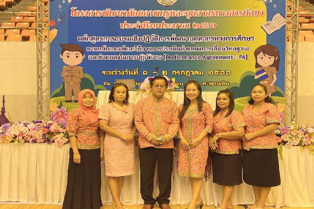 นายวิโรจน์ คำเกลี้ยง ผู้อำนวยการสถานศึกษา นางอาริญา เสนา นางสาวโสภา แสงพุ่ม รองผู้อำนวยการสถานศึกษา และคณะครูโรงเรียนเทศบาลพิบูลสวัสดี เข้าร่วมโครงการพัฒนาศักยภาพครูและบุคลากรทางการศึกษา ประจำปี 2566 “หลักสูตรการอบรมเชิงปฏิบัติการพัฒนาบุคคลกรทางการศึกษา ตามหลักเกณฑ์และวิธีการการประเมินตำแหน่งการเลื่อนวิทยฐานะ” โดย นายพิศาล หัตการ รองนายกเทศมนตรีนครภูเก็ต เป็นประธานเปิด พร้อมด้วย นางสาวสุวรรณา วัชรอาภาไพบูลย์ผู้อำนวยการสำนักการศึกษา หัวหน้าส่วนราชการ ผู้บริหารสถานศึกษา คณะครู เจ้าหน้าที่สำนักการศึกษา วิทยากร และแขกผู้มีเกียรติ ณ อาคารยิม 4,000 ที่นั่ง เทศบาลนครภูเก็ต