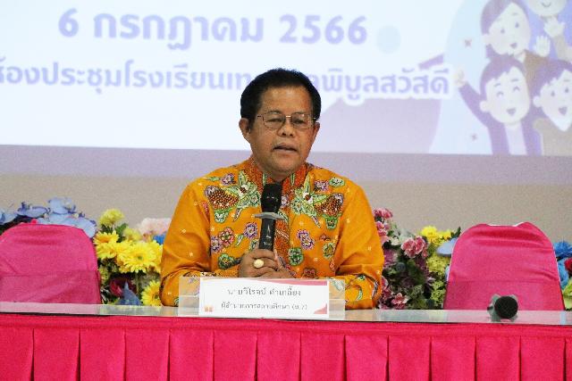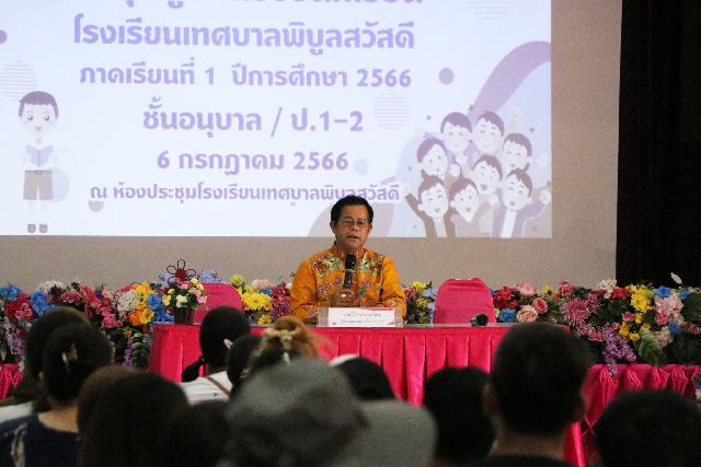 นายวิโรจน์ คำเกลี้ยง ผู้อำนวยการสถานศึกษา นางอาริญา เสนา นางสาวโสภา แสงพุ่ม รองผู้อำนวยการสถานศึกษา พร้อมคณะครู ได้จัดการประชุมผู้ปกครองนักเรียน ประจำปีการศึกษา 2566 เพื่อปรึกษาหารือ ร่วมคิด ร่วมพัฒนา และให้ทราบถึงนโยบายการจัดการศึกษาของโรงเรียน ณ ห้องประชุมโรงเรียนเทศบาลพิบูลสวัสดี