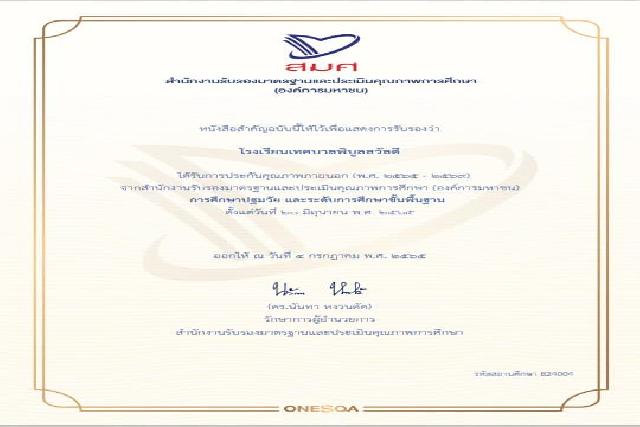 โรงเรียนได้รับรองมาตรฐานและประเมินคุณภาพการศึกษา